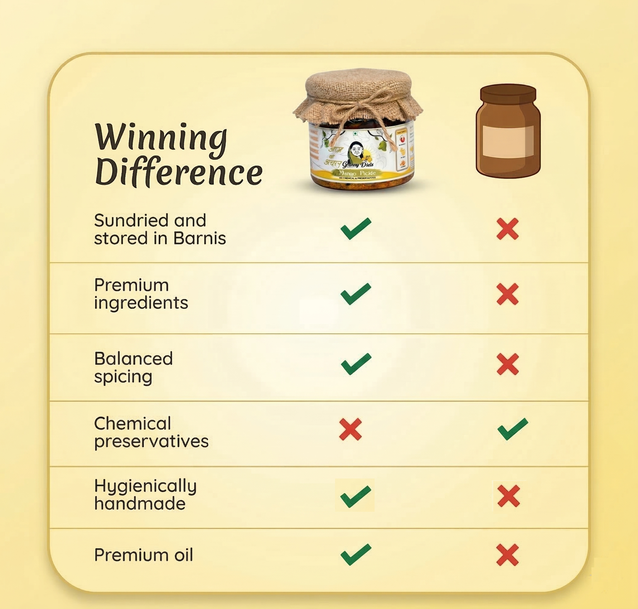 The ‘Aam Ka Achar’ texture is perfect. It’s not mushy like store-bought brands. It feels like it was cured naturally in the sun.